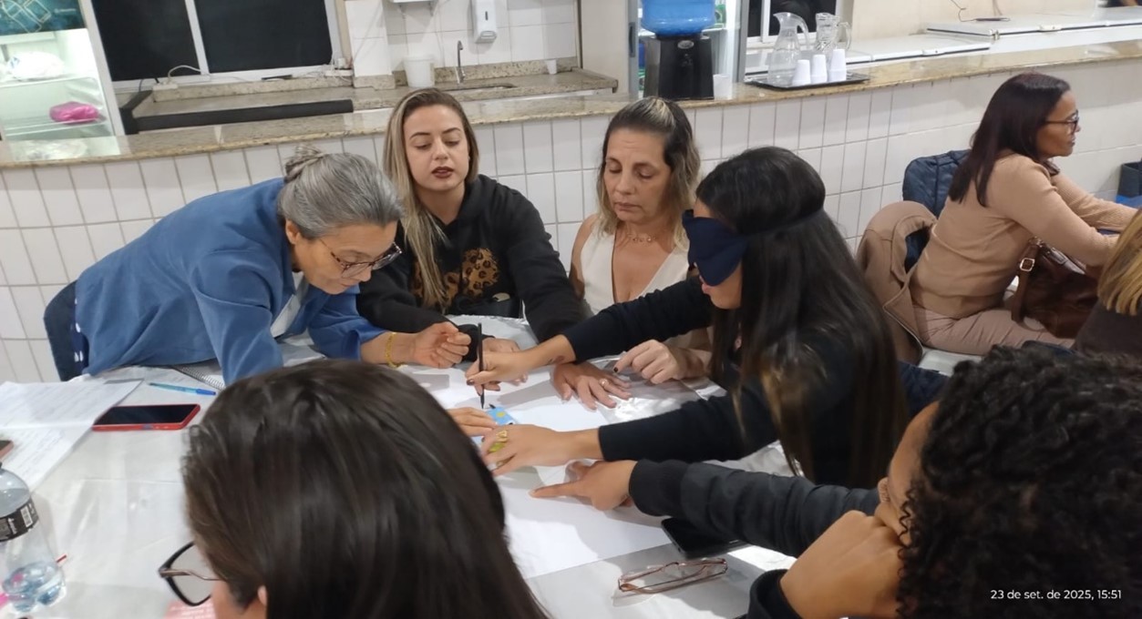 Além disso, o momento formativo também contou com reflexões sobre tecnologias assistivas, materiais adaptados e os serviços oferecidos pelo Lar das Moças Cegas, fortalecendo a construção de um trabalho colaborativo para a inclusão.