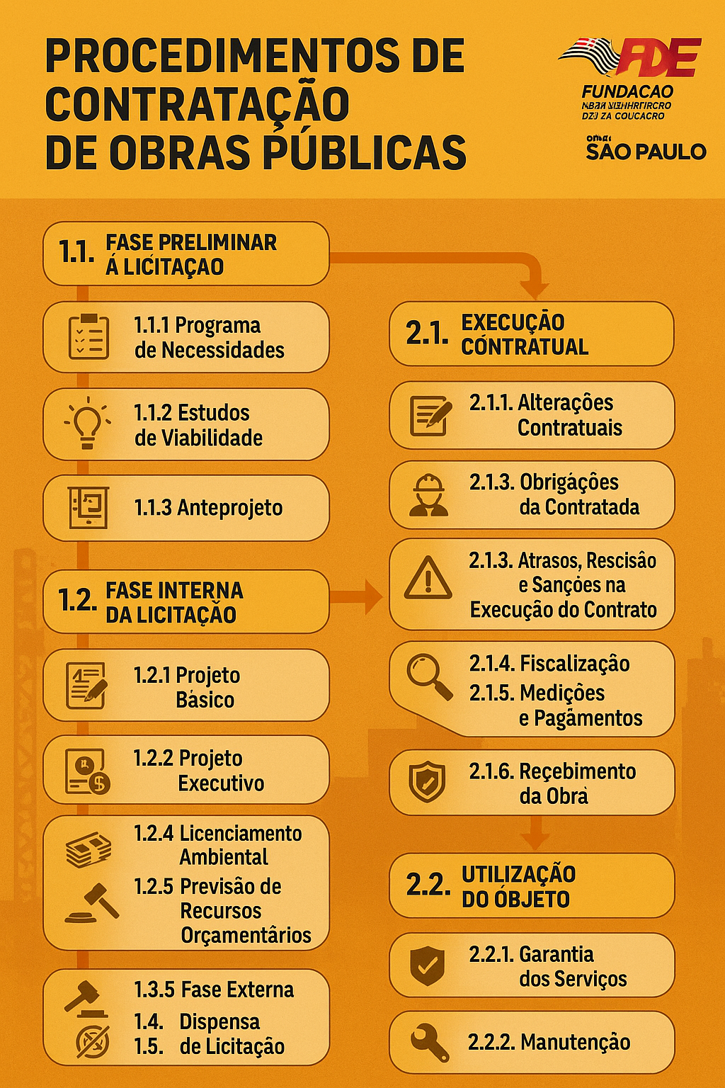Artigo 149 – Os Serviços de Obras e Manutenção contam com seção de fiscalização, como área finalística vinculam-se à Diretoria de Infraestrutura e Serviços Escolares, Coordenadoria Geral de Suporte Administrativo e Diretoria de Contratos e Convênios e tem as seguintes competências: